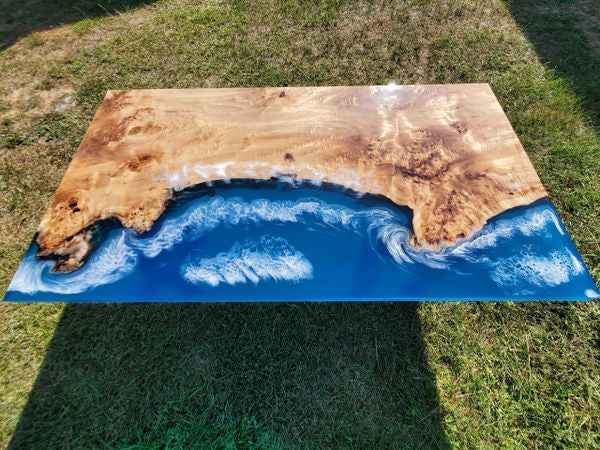 With ocean themed epoxy tables we can use sand, shells, rocks, you name it we can do it! These tables are half wood/half epoxy. With variations on the amount of wood or epoxy used. The table pictured is a 72L X 38WX 30 .